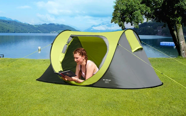 Tente jetable Ă simple paroi extrĂŞmement lĂ©gère pour les chaudes nuits d’Ă©tĂ©. Deux aĂ©rations latĂ©rales permanentes. AĂ©ration moustiquaire Ă l’entrĂ©e.
