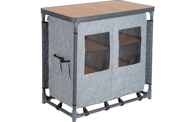 Un meuble de cuisine Ă©lĂ©gant et luxueux. ÉquipĂ© d’une couverture extra robuste en polyester oxford 600D de haute qualitĂ©, aspect lin, qui contient 6 Ă©tagères utiles et 4 poches latĂ©rales, ainsi que d’un panneau dur de densitĂ© moyenne avec dĂ©cor en bois. Les pieds sont rĂ©glables individuellement et assurent une grande stabilitĂ© sur n’importe quelle surface. L’armoire de cuisine est livrĂ©e dans un sac de transport.