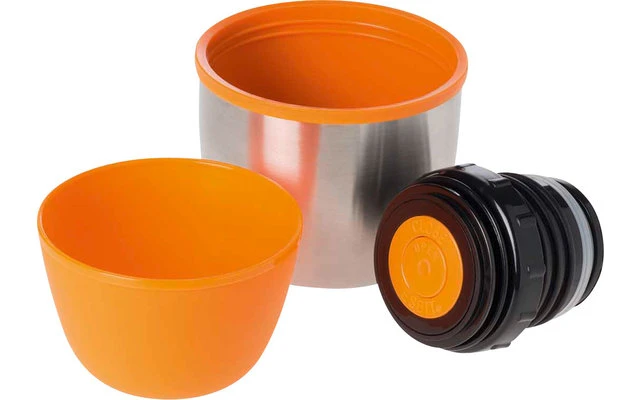 La bouteille isolante garde les boissons chaudes ou froides particulièrement longtemps – elle est Ă©quipĂ©e d’un bouchon avec fonction verseur et d’un bouchon Ă vis supplĂ©mentaire – deux gobelets sont Ă©galement fournis.