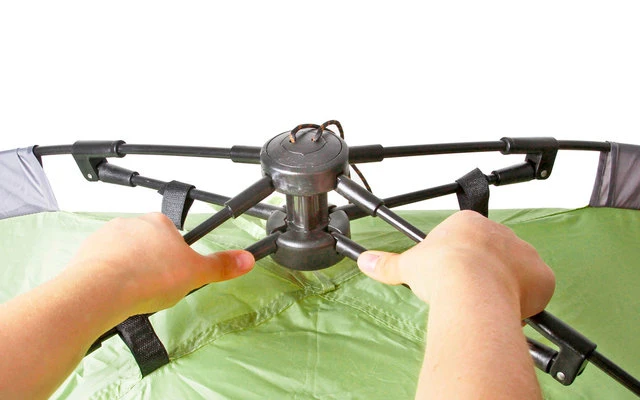 Tente dôme automatique avec double toit et avant-corps pratique. Grâce à une armature moderne avec technique de traction par câble intégrée, elle est montée et prête à l’emploi en quelques secondes. Cordes de haubanage prémontées. Dimensions compactes et poids réduit. Avec sac de rangement.