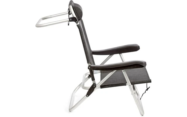 Chaise de plage Brunner en aluminium avec dossier réglable en 4 positions et coussin de nuque pour un confort supplémentaire. Parfait pour se détendre et profiter du soleil à la piscine ou à la plage.
