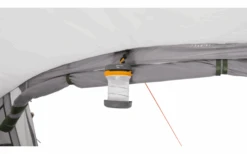 - Armature flexible : la tente, l’avant-corps et l’extension sont soutenus par des tiges en fibre de verre.