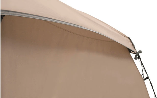 La yourte Easy Camp Moonlight dispose de barres en PRV prĂ©-courbĂ©es qui assurent un espace total pour la tĂŞte. Elle peut accueillir jusqu’Ă six Glampers et offre ainsi aux familles et aux amis beaucoup d’espace et de libertĂ© – pour une expĂ©rience unique de la nature et des plaisirs communs en plein air. Des fenĂŞtres en PVC assurent une luminositĂ© suffisante Ă l’intĂ©rieur. Les rideaux enroulables avec des points de suspension fixes offrent en mĂŞme temps une protection contre les regards indiscrets. La grande entrĂ©e pliable, qui peut ĂŞtre ouverte et fermĂ©e de manière flexible grâce Ă une fermeture Ă©clair Ă double sens, permet un accès facile. De grands inserts en filet sous le double-toit, une fenĂŞtre en filet intĂ©grĂ©e dans la porte avec un rideau enroulable ainsi que des ouvertures d’aĂ©ration couvertes Ă l’arrière assurent une bonne aĂ©ration.