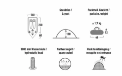 - Tapis de sol : 190T polyester PU, 3.000 mm