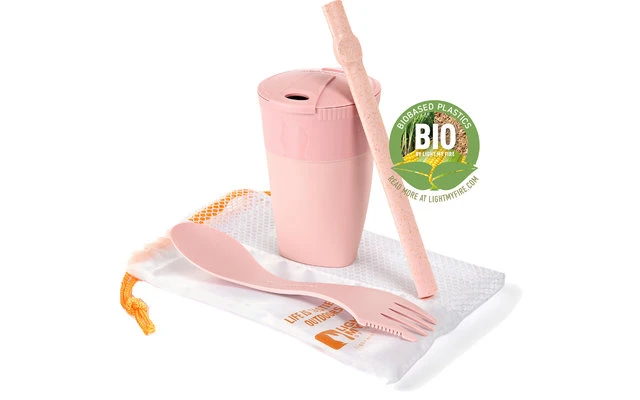 1 spork, 1 gobelet, 1 paille, sac en filet en PET recyclé