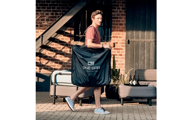 Le One Bar combine un style de vie moderne, un design excellent et un confort convaincant avec la mobilitĂ© et la lĂ©gèretĂ© d’un coussin d’air. Le One Bar est donc une innovation unique en son genre, qui allie parfaitement vie Ă l’intĂ©rieur et vie Ă l’extĂ©rieur. One Bar est synonyme de confort d’assise maximal, oĂą que tu sois, que ce soit dans ton appartement, sur ta terrasse ou en vacances. Chaque Ă©lĂ©ment One Bar se monte en quelques minutes sans outils et se remplit d’air. Combine les Ă©lĂ©ments pour former un groupe de lounge mobile aux possibilitĂ©s infinies. Tu peux tout aussi rapidement et facilement dĂ©gonfler les Ă©lĂ©ments et rĂ©duire leur volume d’un quart. Ton One Bar Lounge peut ainsi passer l’hiver dans un espace rĂ©duit ou partir en voyage avec toi. Grâce Ă leur lĂ©gèretĂ©, leur flexibilitĂ© et leurs possibilitĂ©s de combinaison illimitĂ©es, les Ă©lĂ©ments One Bar sont uniques.