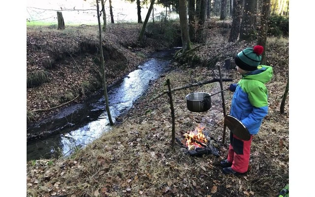 Les deux anses situĂ©es en dehors du centre de gravitĂ© offrent un maintien sĂ»r lors du transport et sur le trĂ©pied. ÉquipĂ©e des pieds fournis, la marmite peut ĂŞtre placĂ©e au-dessus d’un rĂ©chaud ou d’un feu