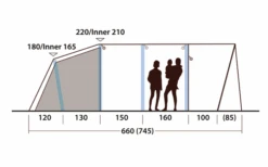 - Le toit clair de l’auvent dans une teinte chaude crĂ©e une ambiance lumineuse et agrĂ©able dans la tente Le système HookTrack offre des options polyvalentes pour suspendre des lampes et d’autres objets pesant jusqu’Ă 1,5 kg