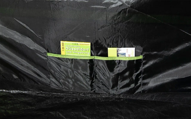 Fermetures Ă glissière extra-rĂ©sistantes avec couverture zippĂ©e. Les piquets en acier de 5 mm sont très solides et ne se tordent pas, mĂŞme sur les sols durs. Les coutures sont scellĂ©es de manière Ă©tanche Ă l’aide d’une bande de couture et garantissent une meilleure rĂ©sistance aux dĂ©chirures des coutures. EntrĂ©e des câbles au moyen d’une fermeture Ă glissière et passage des câbles pour l’Ă©clairage. Tente intĂ©rieure assombrie avec système Vario Vent Control. 2 entrĂ©es de moustiquaires tiennent Ă l’Ă©cart les nuisibles et peuvent ĂŞtre facilement actionnĂ©es de l’intĂ©rieur en fonction du climat. Une paroi de sĂ©paration zippĂ©e permet de diviser la tente intĂ©rieure en une grande cabine ou en deux zones de couchage. 5 organiseurs pratiques et 5 poches de tente intĂ©rieures pour les ustensiles. 2 supports de lampe pour les lampes de camping complètent le confort. Le Garda 5.0 offre suffisamment de place pour 5 personnes avec leur Ă©quipement de camping. Convient parfaitement pour les vacances en camping.